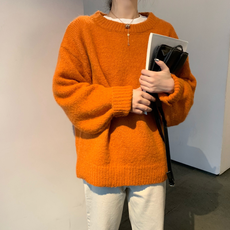 / 韓版女神套裝秋冬寬松套頭加厚慵懶風毛衣女+高腰直筒闊腿九分褲