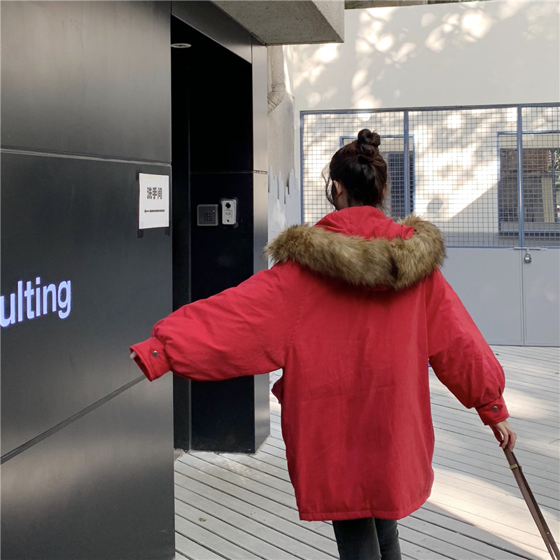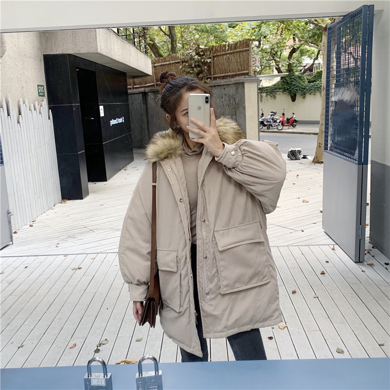 2018冬季新款時尚純色寬松大毛領外套加厚保暖女裝氣質百搭棉服潮