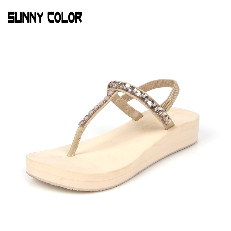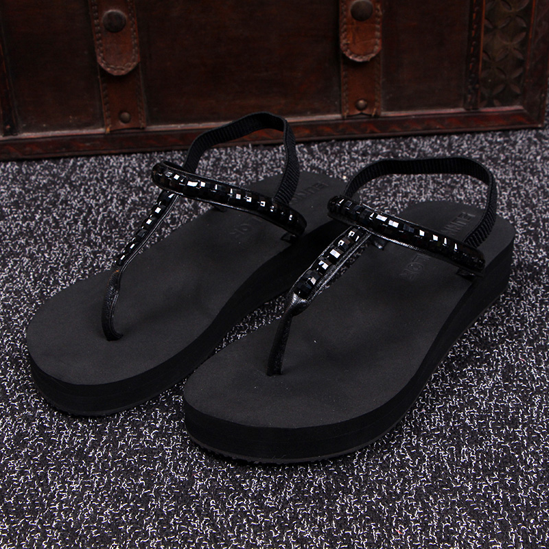 / 夏季夾腳人字拖 厚底松糕坡跟沙灘鞋 甜美女士涼拖鞋
