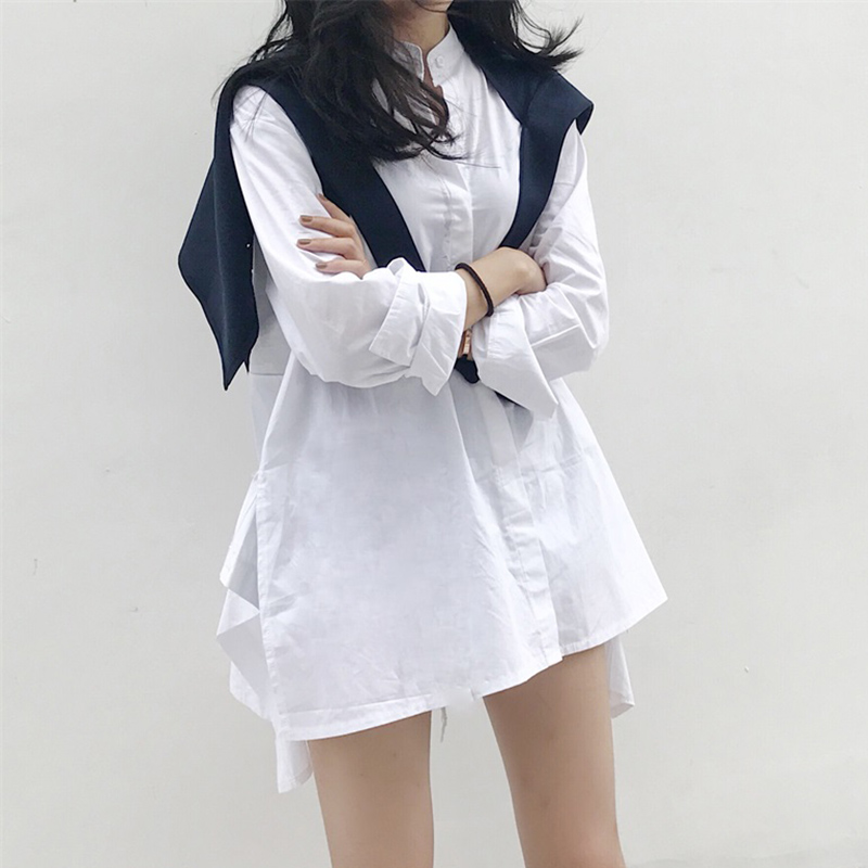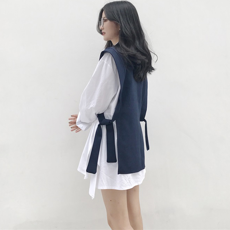 兩件套裝女裝早秋新款韓版寬松顯瘦側開叉長袖襯衣+純色披肩馬甲