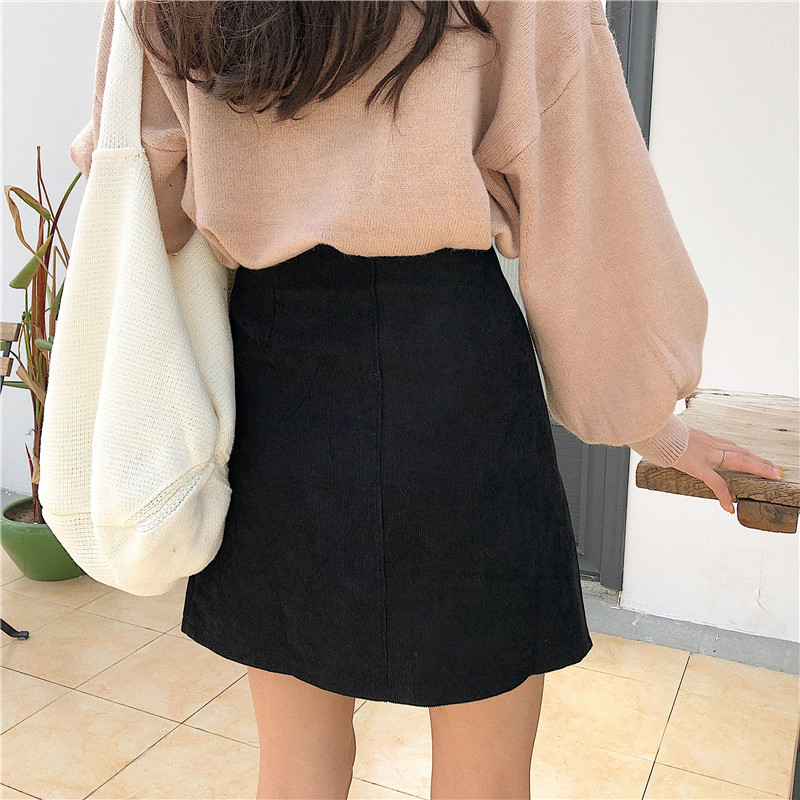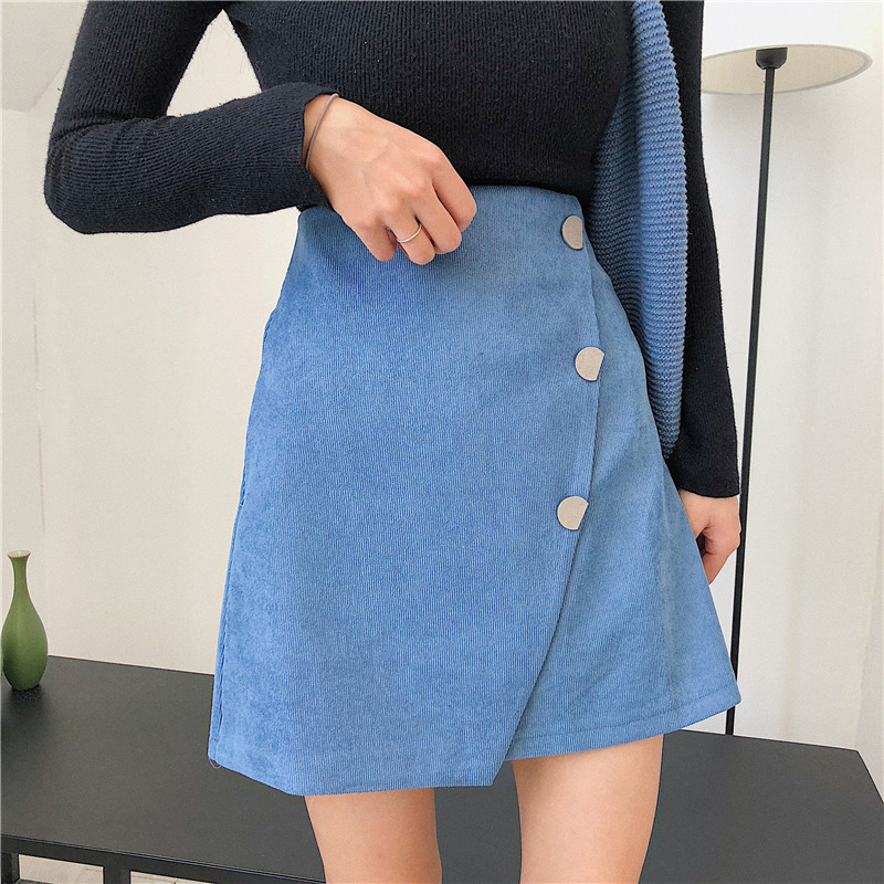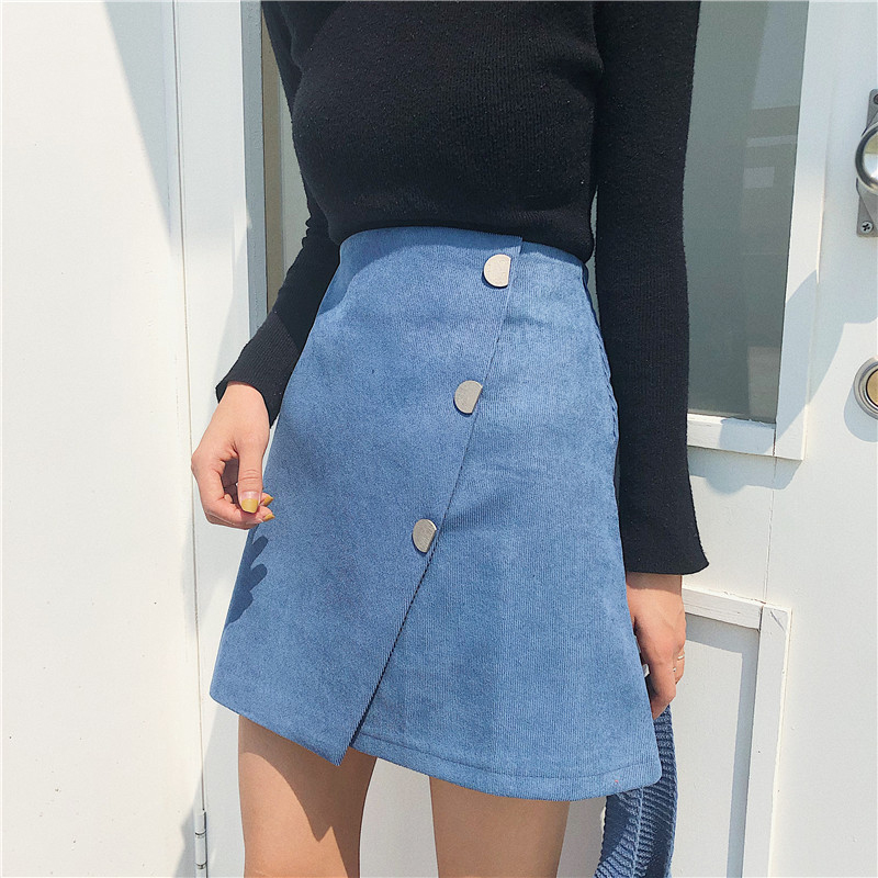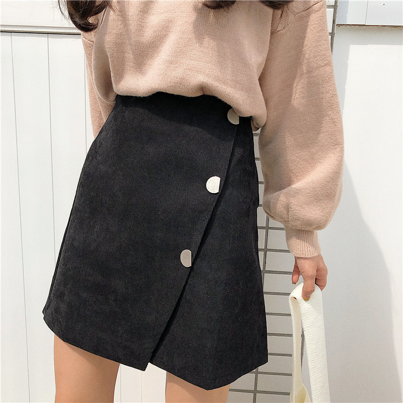 / 不規則單排扣半身裙秋裝女新款顯瘦氣質黑色包臀裙高腰a字短裙子