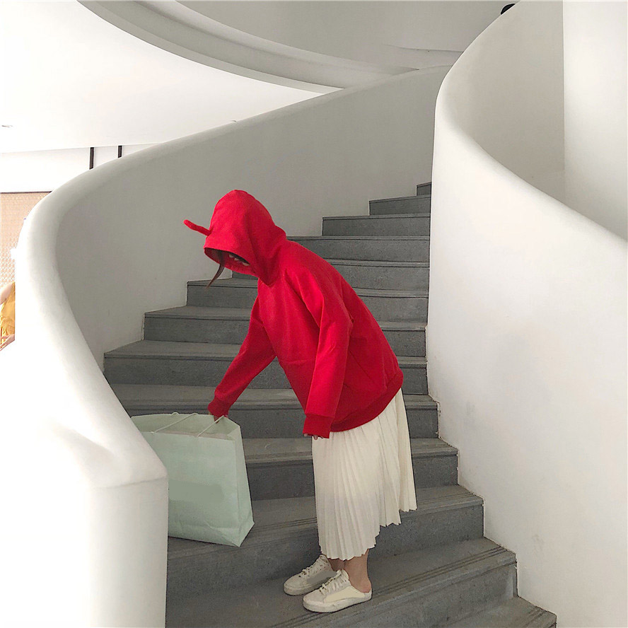 / 學生套頭天線寶寶加絨加厚女寬松韓版純色衛衣女連帽秋季2018新款