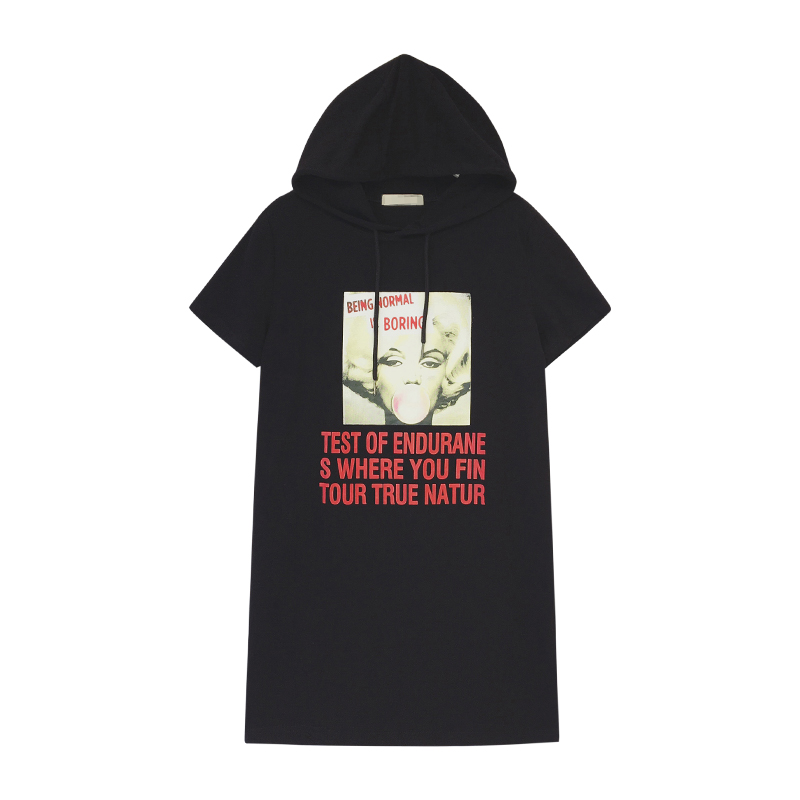 / 天天特價春夏韓版中長款連帽衛衣女寬松短袖印花休閑時尚潮連衣裙