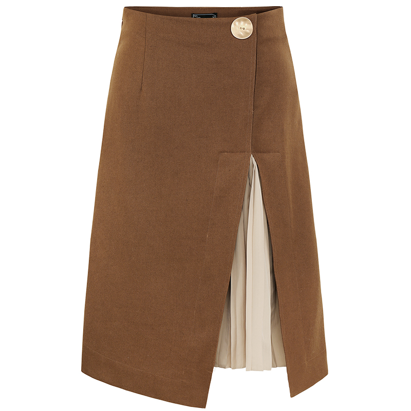 / MG小象不規則半身裙女秋冬假兩件開叉拼接裙子2018新款高腰a字裙