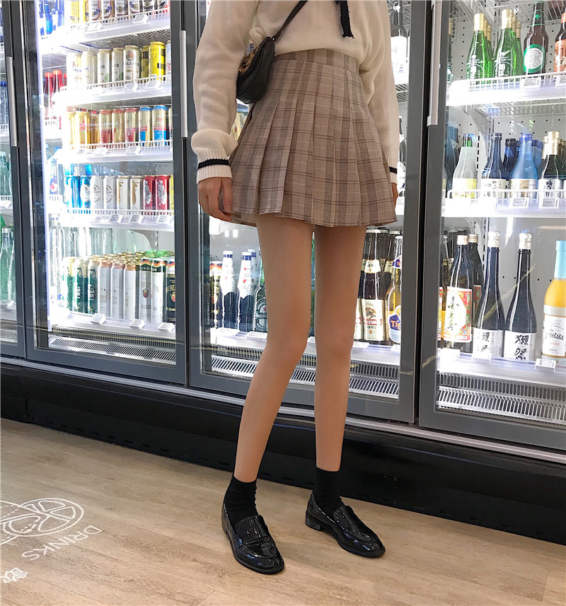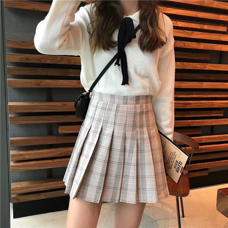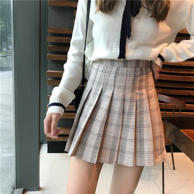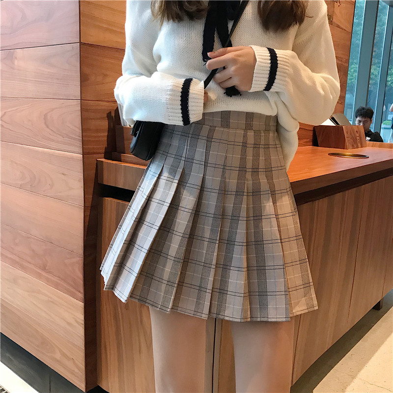 / 學院風百褶短裙女秋冬裝2018新款韓版高腰顯瘦格子A字半身裙子潮