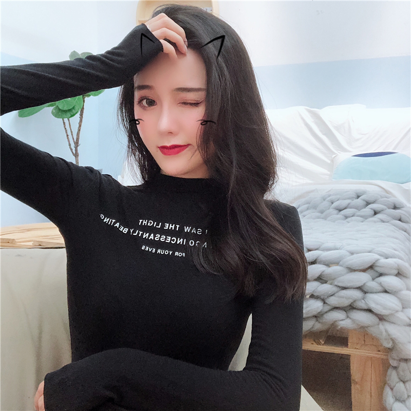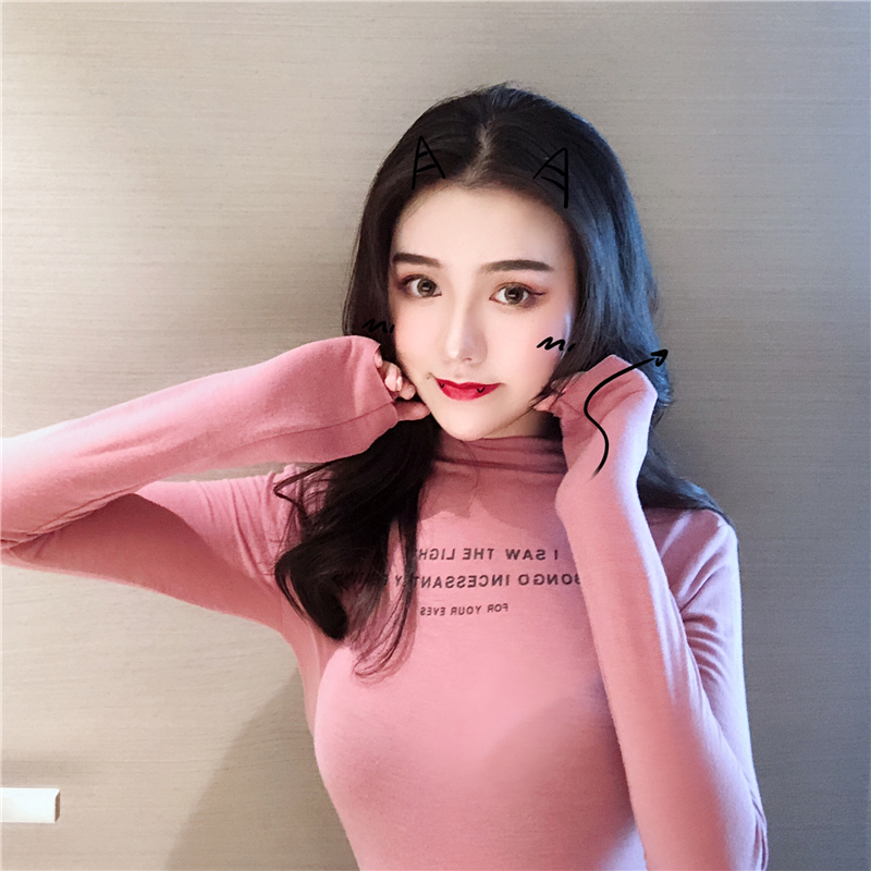初秋新款女上衣韓版時尚chic基礎款百搭顯瘦高領純色打底衫t恤女