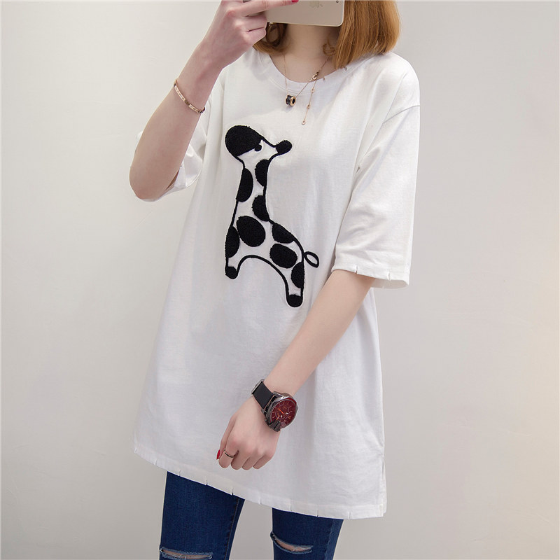 短袖t恤女寬松上衣白色打底衫中長款韓版學生春季女裝新款潮