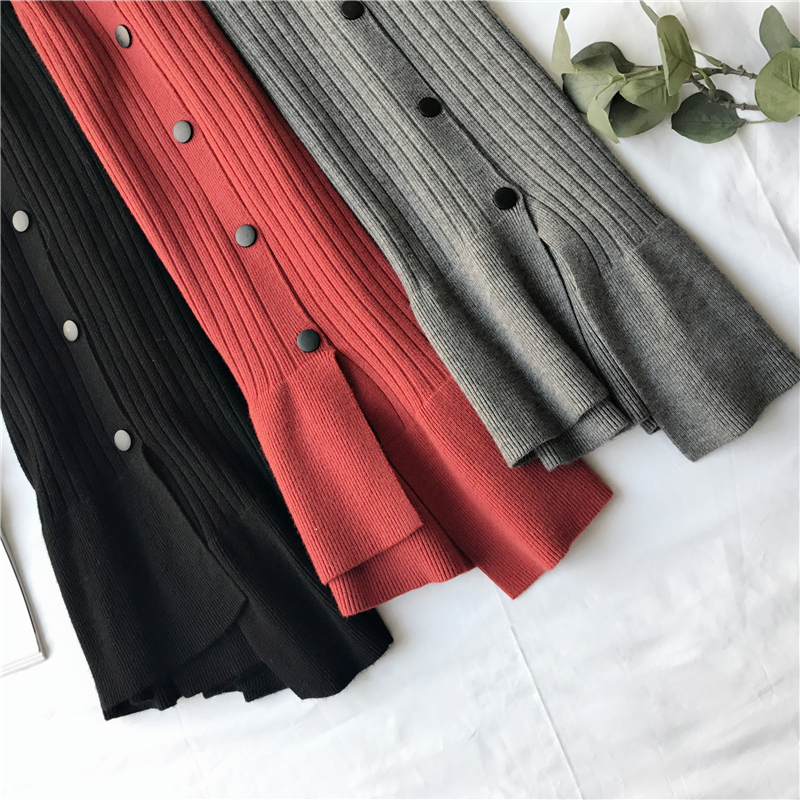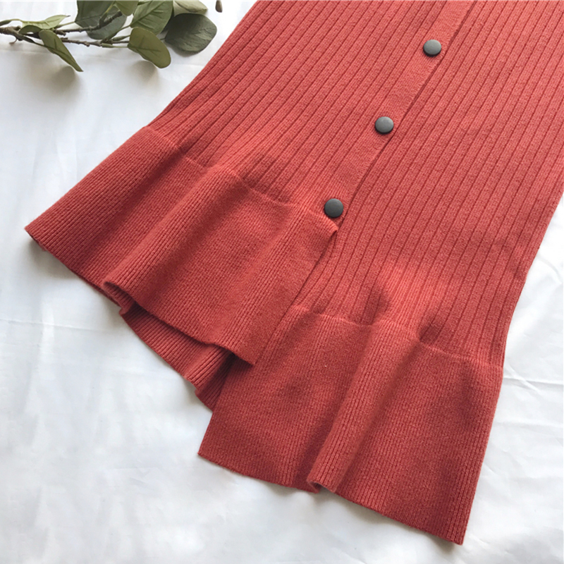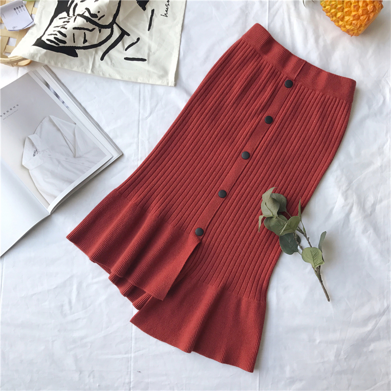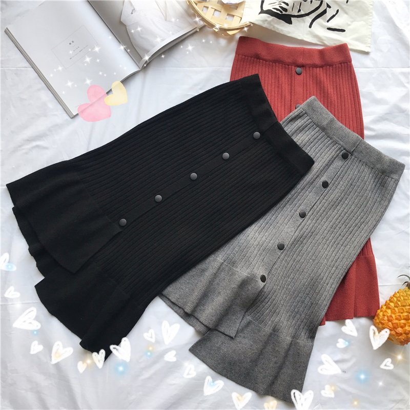 / 復古不規則針織半身裙子女秋冬裝新款黑色高腰顯瘦包臀魚尾中長裙