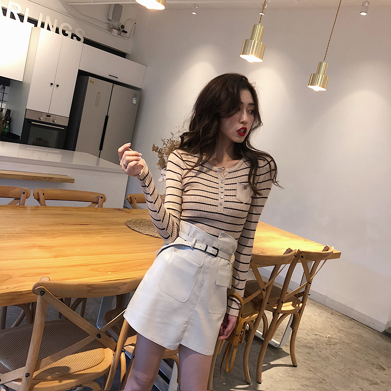 / 秋裝女2018新款修身顯瘦韓版時尚百搭打底上衣復古條紋長袖針織衫