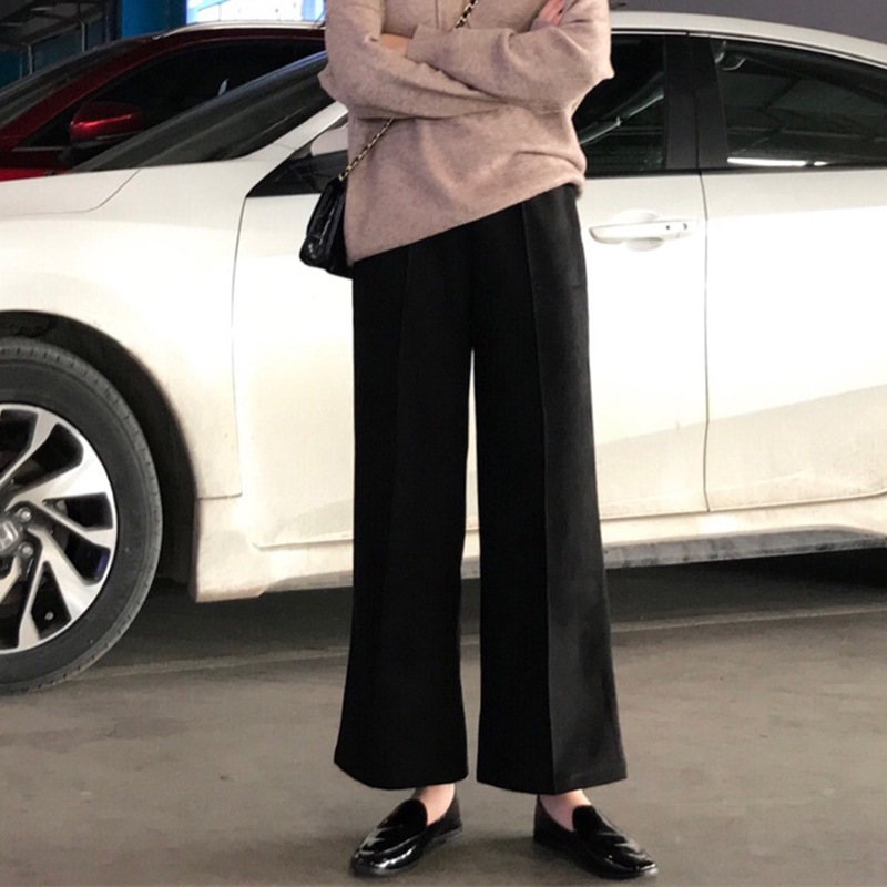 / 精神女生社會褲冬裝2018新款韓版寬松顯瘦闊腿褲學生高腰直筒褲子