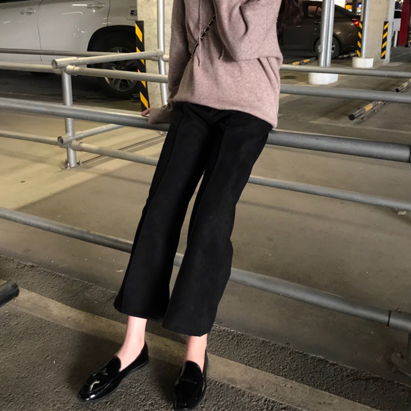 精神女生社會褲冬裝2018新款韓版寬松顯瘦闊腿褲學生高腰直筒褲子