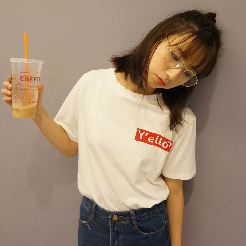 / 夏季韓版新款時尚百搭休閑寬松顯瘦圓領個性印花短袖T恤女潮