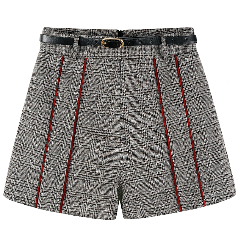 MG小象高腰格子短褲女寬松休閑直筒褲秋冬新款港味復古chic褲子潮