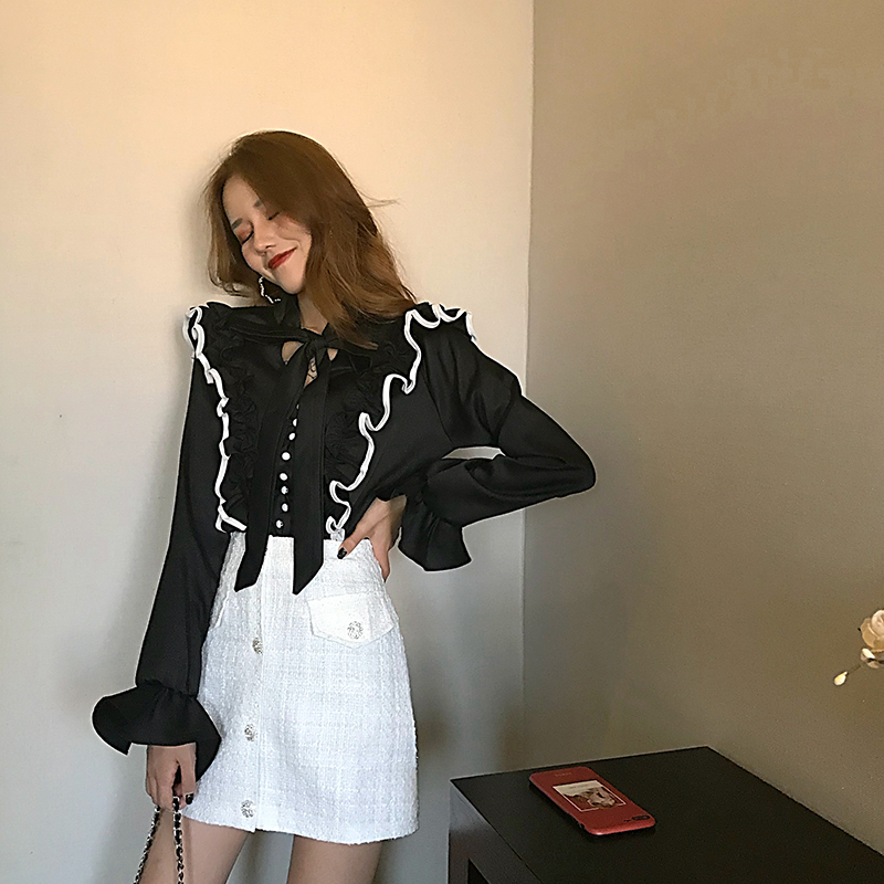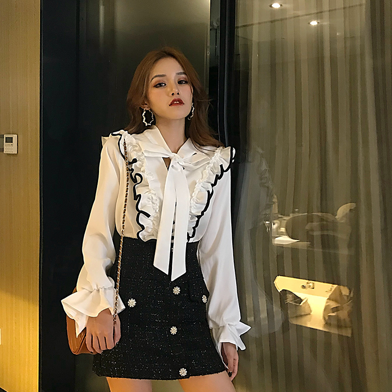 / 港風秋裝新款韓版百搭氣質時尚套裝洋氣雪紡衫小香風高腰半身裙女