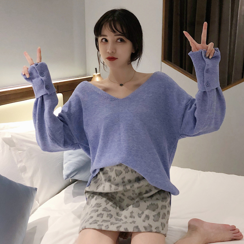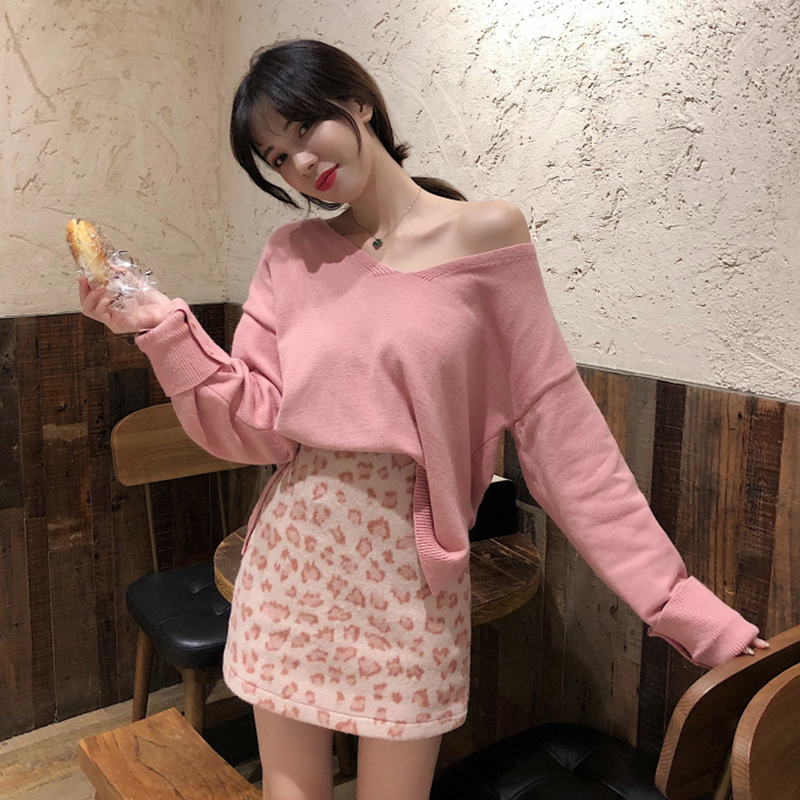 / 時尚套裝女秋冬2018新款寬松V領毛衣針織外套毛呢豹紋A字半身裙子