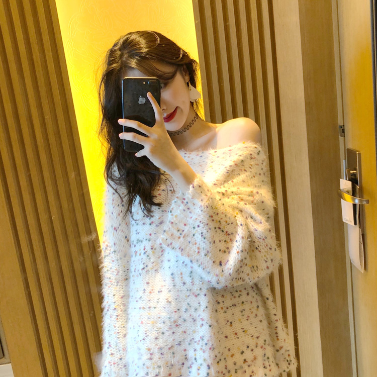 / 網紅同款新款秋季時尚套裝慵懶風多彩毛衣絲滑不規則長裙兩件套女
