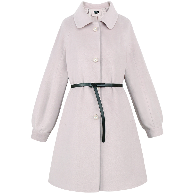MG小象中長款毛呢大衣女冬裝2018新款寬松學生甜美收腰呢子外套潮