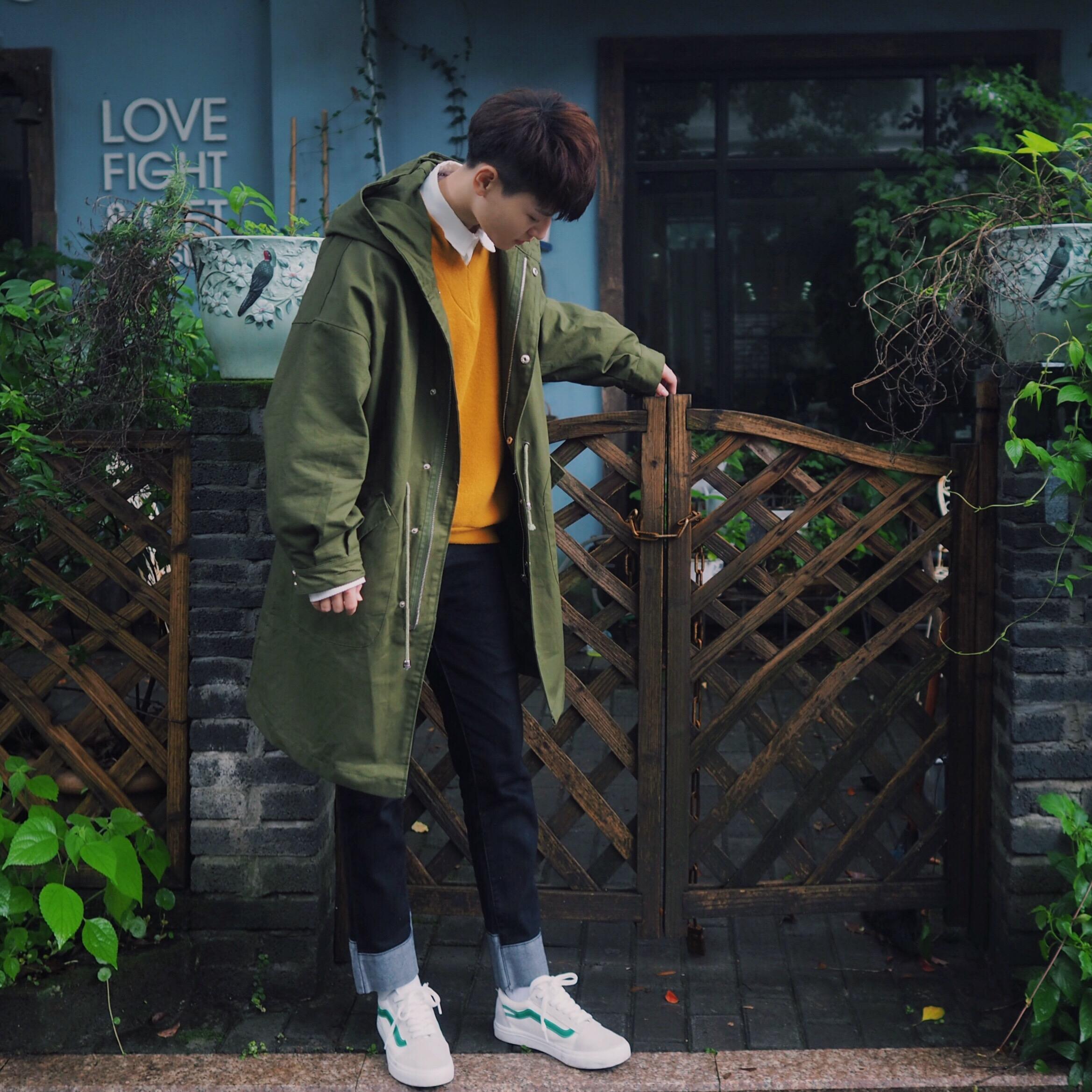 2018新款男士風衣秋季中長款外套韓版寬松潮流冬季軍大衣披風情侶
