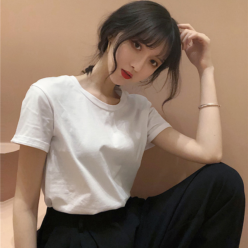 / 秋裝女2018新款基礎款純色圓領百搭短袖T恤女學生簡約顯瘦tee上衣