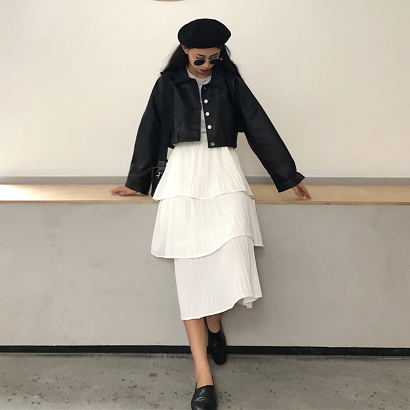 / 套裝女秋冬2018新款秋裝t恤白色蛋糕半身裙子網紅兩件套上衣顯瘦