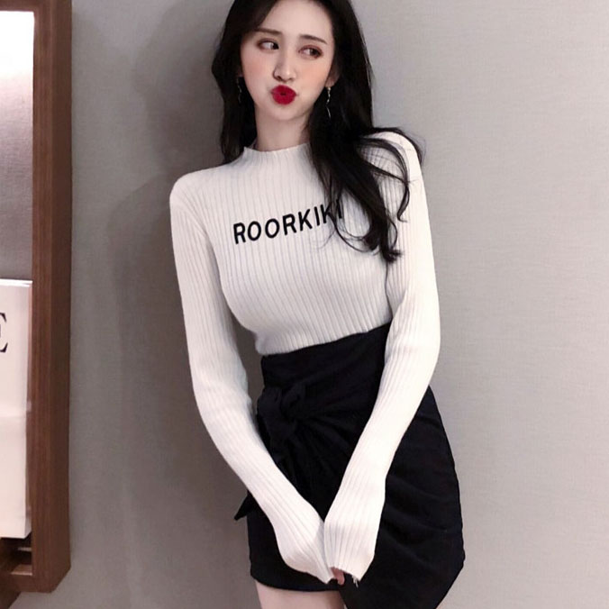 / 復古慵懶風套頭毛衣女2018新款秋冬修身百搭長袖半高領打底針織衫