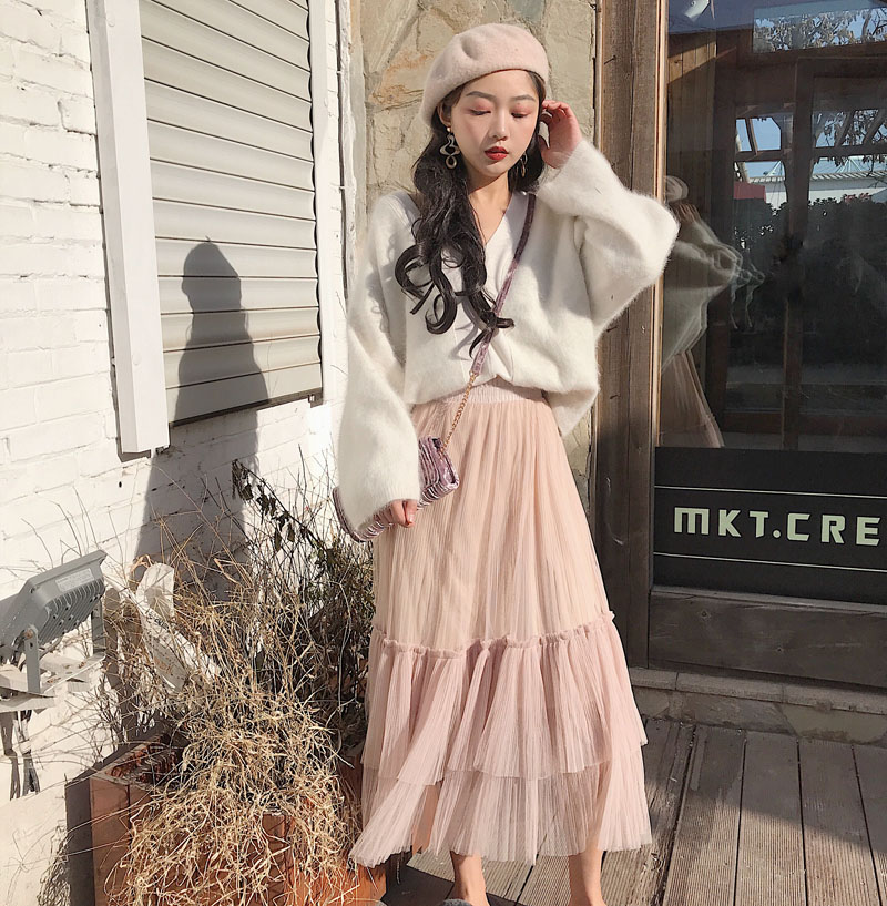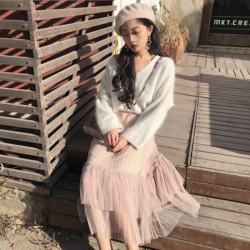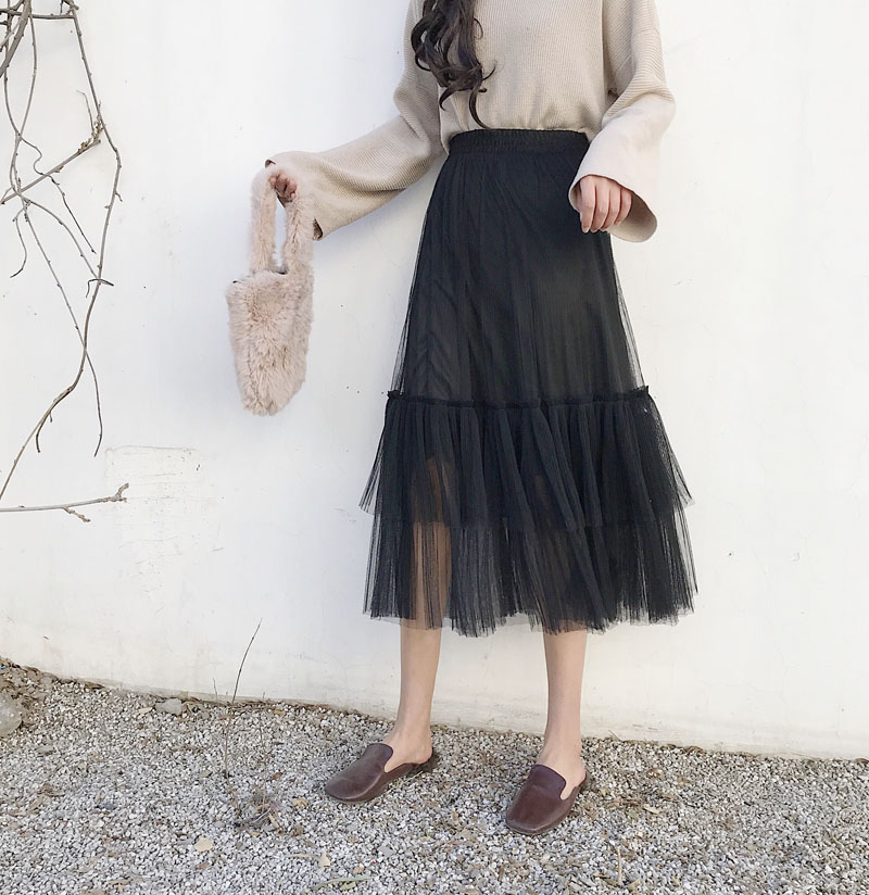 一條光用顏值就能打動人的網紗拼接A字裙,