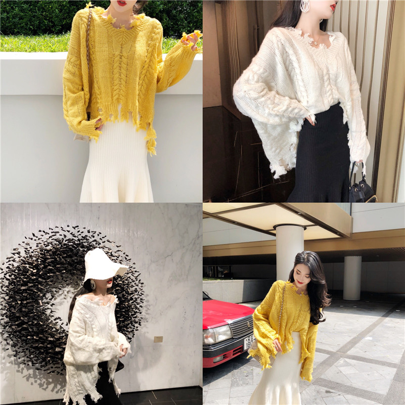 / 2018秋款v領時尚寬松顯瘦套頭小清新毛衣個性裁剪oversize大毛衣
