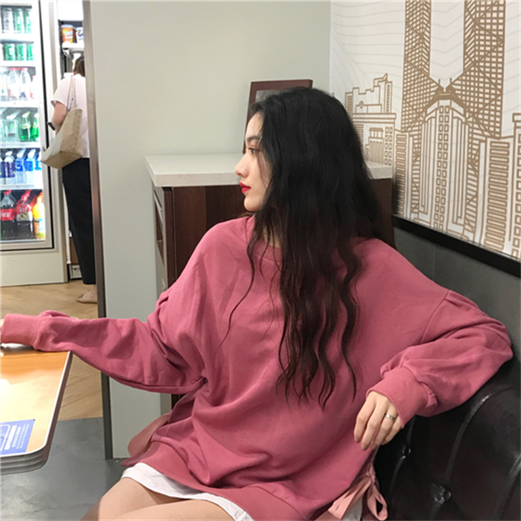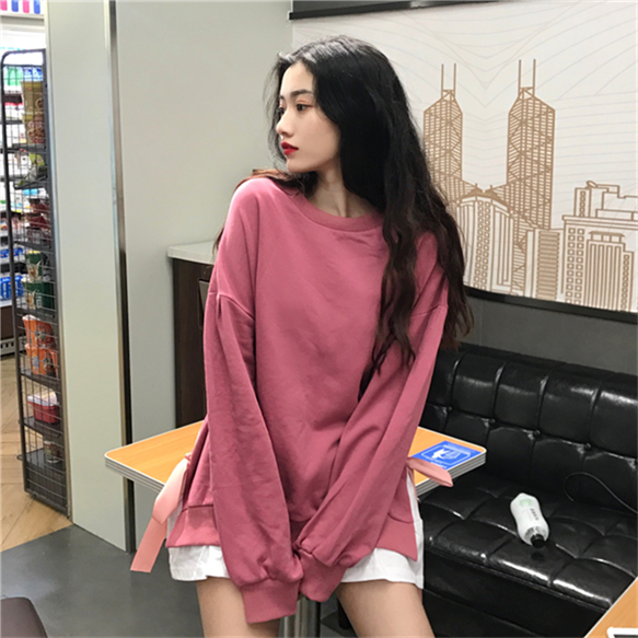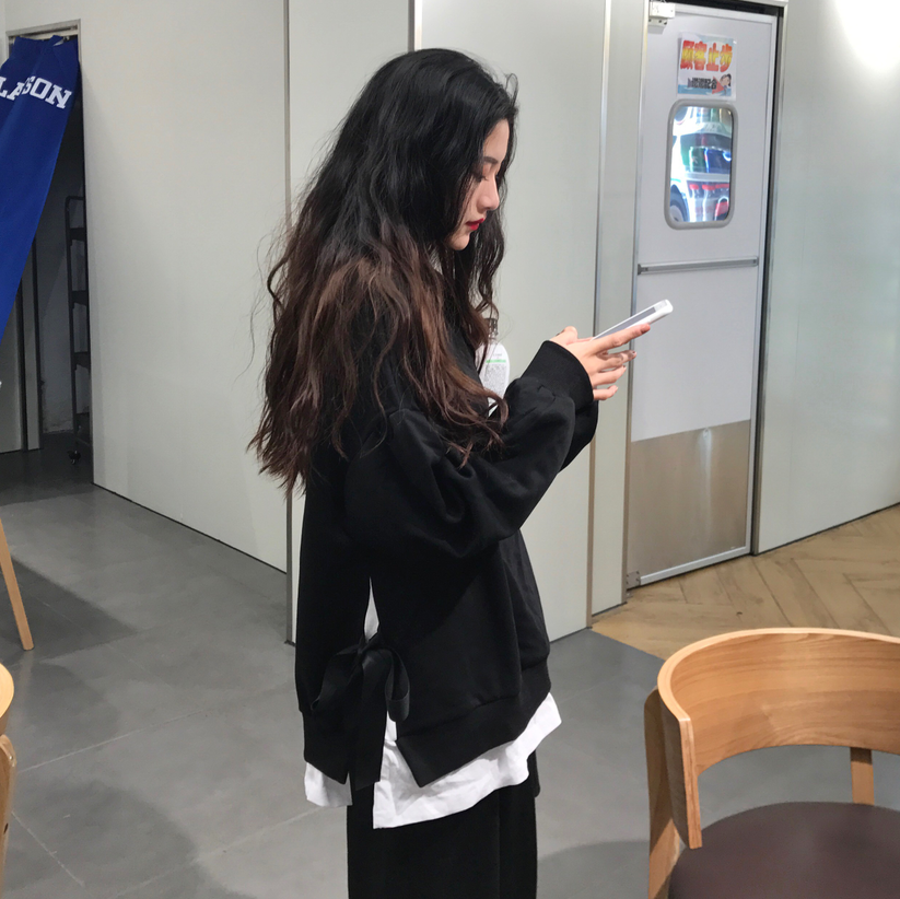 / 早秋衛衣2018新款女長袖韓版寬松百搭假兩件系帶顯瘦套頭衛衣上衣