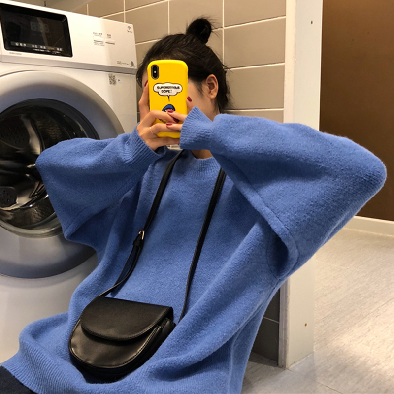 / 慵懶風網紅毛衣女冬裝新款ins超火純色針織外套針織寬松休閑上衣
