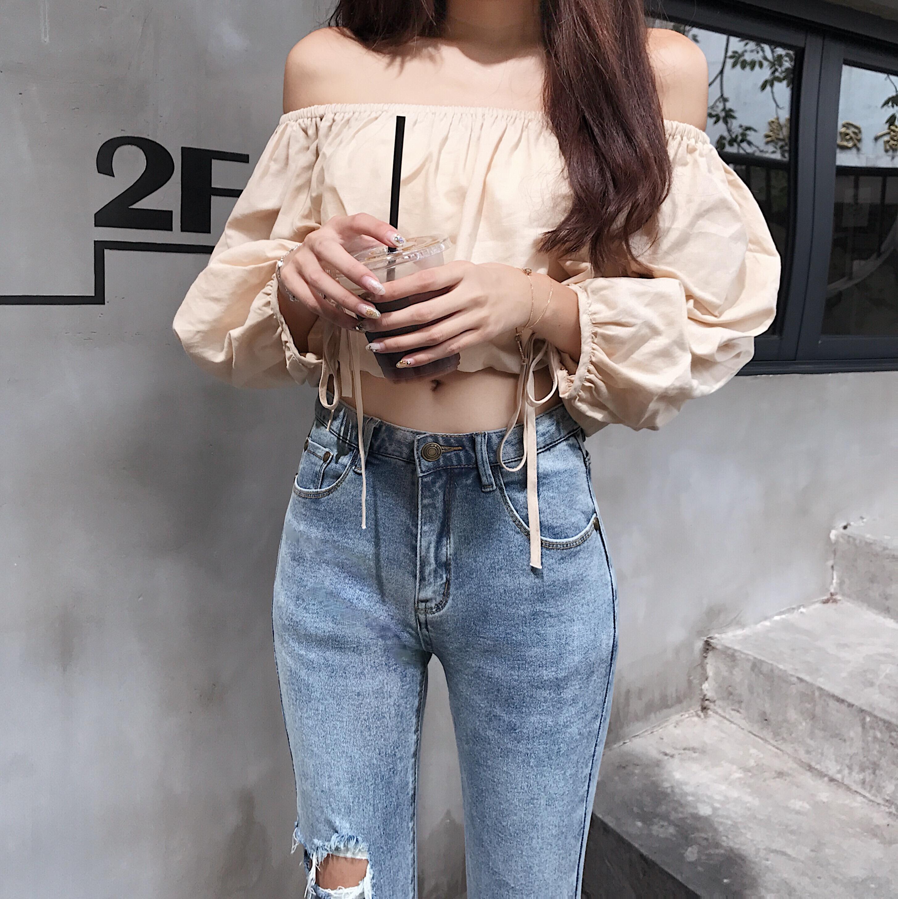 / 褲子2018新款韓版時尚高腰彈力破洞牛仔褲女小腳復古港味九分褲潮