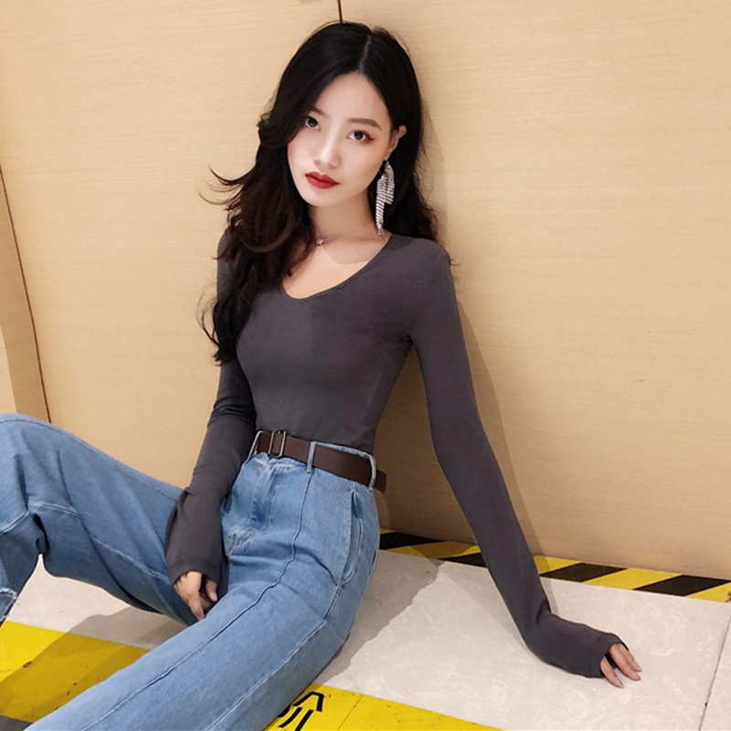 打底衫女長袖秋裝2018新款韓版修身顯瘦白色T恤少女緊身上衣體恤