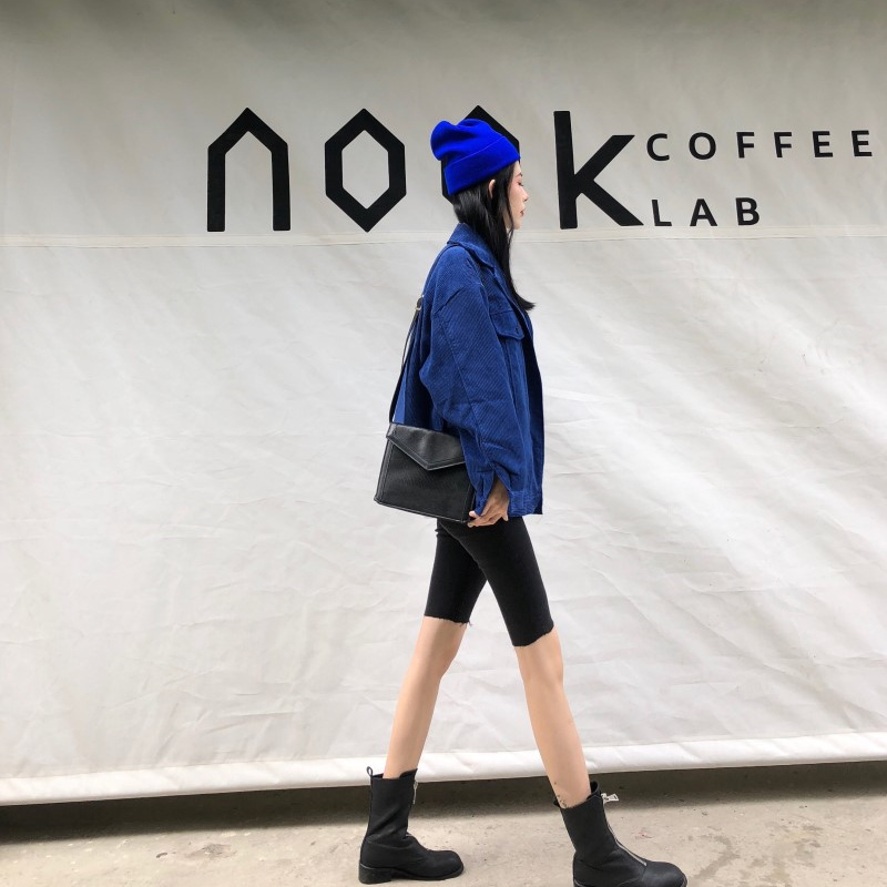 / 韓版港味百搭寬松燈芯絨單排扣中長款棉衣外套女秋冬2018新款上衣