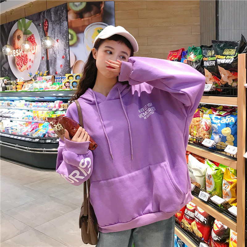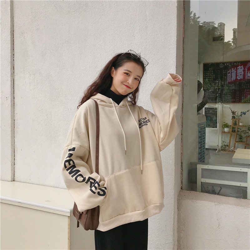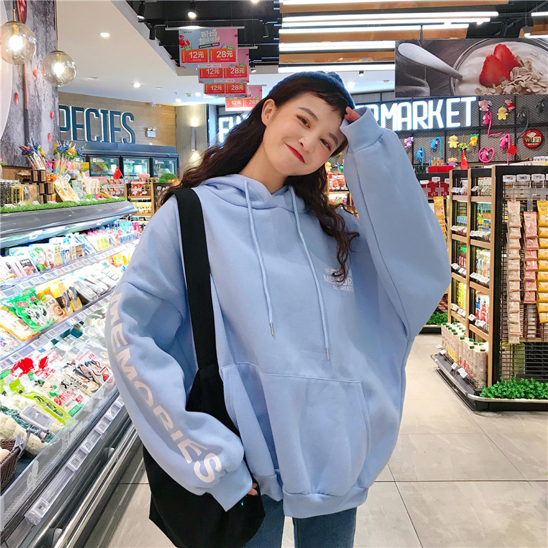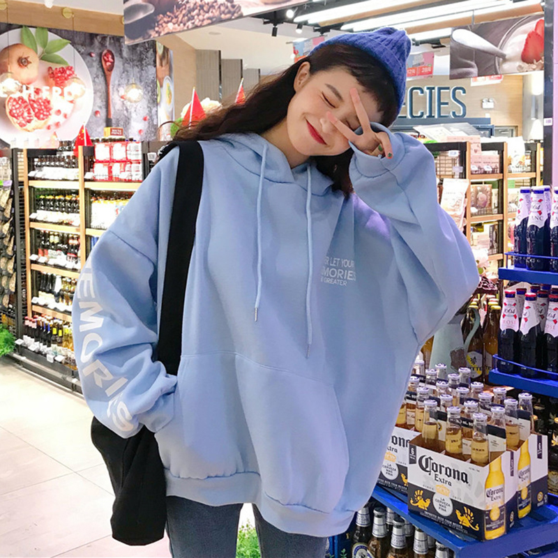 pp home字母印花加絨衛衣女秋冬裝2018新款韓版百搭寬松連帽外套