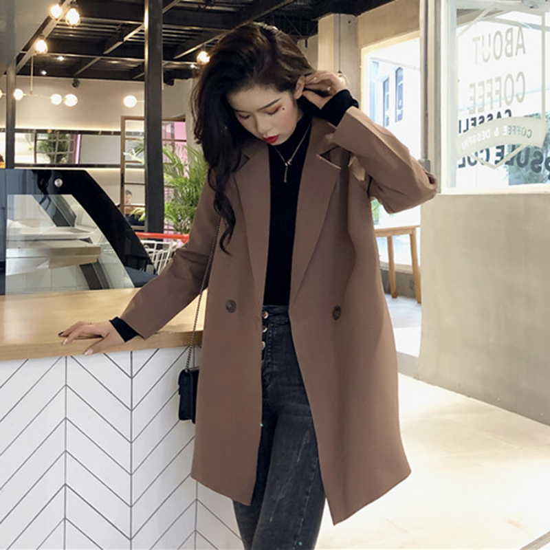/ 黑色氣質中長外套秋裝女2018新款港風寬松女士西裝慵懶洋氣上衣潮
