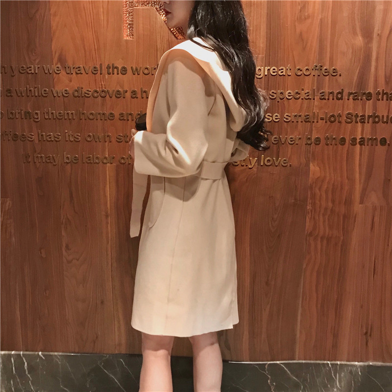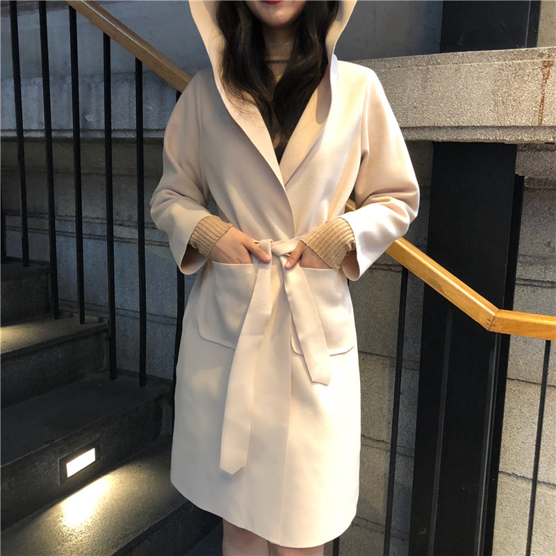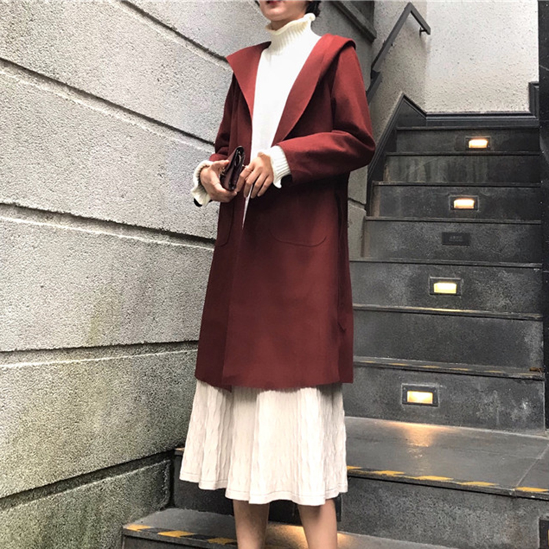 2018流行毛呢外套女秋冬裝新款赫本大衣寬松開衫學生過膝連帽上衣