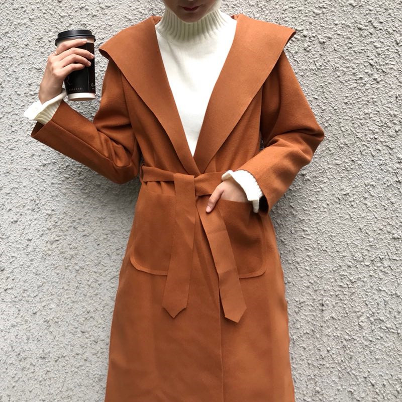 / 2018流行毛呢外套女秋冬裝新款赫本大衣寬松開衫學生過膝連帽上衣