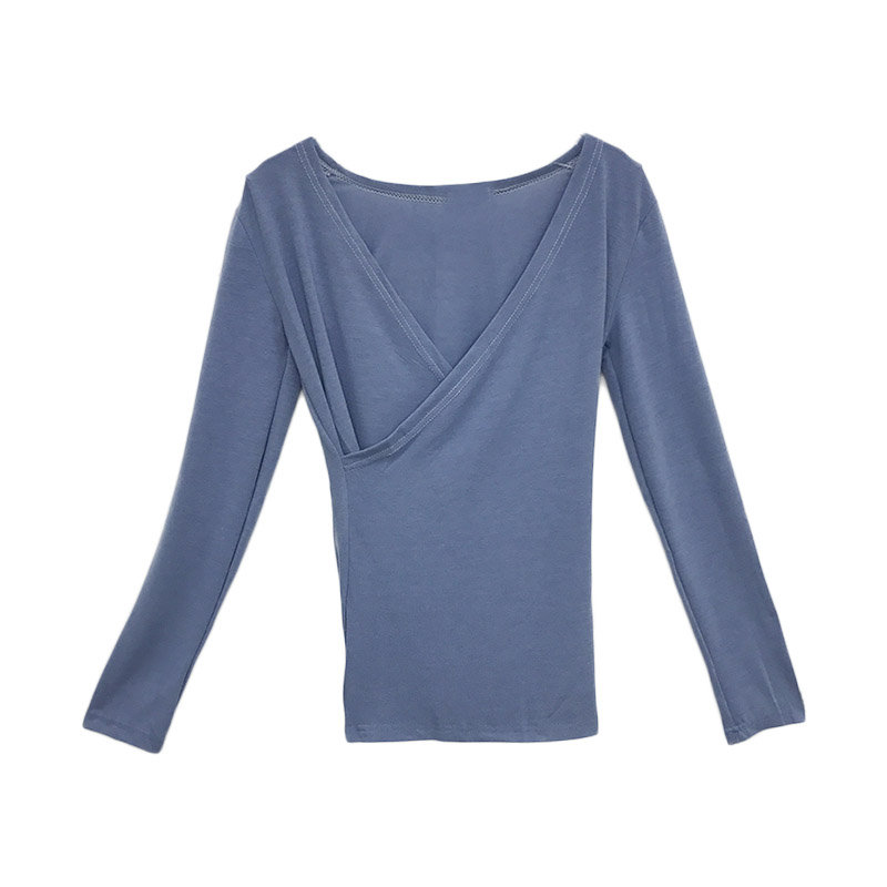 秋裝女2018新款簡約純色韓版上衣修身彈力百搭V領長袖打底針織衫