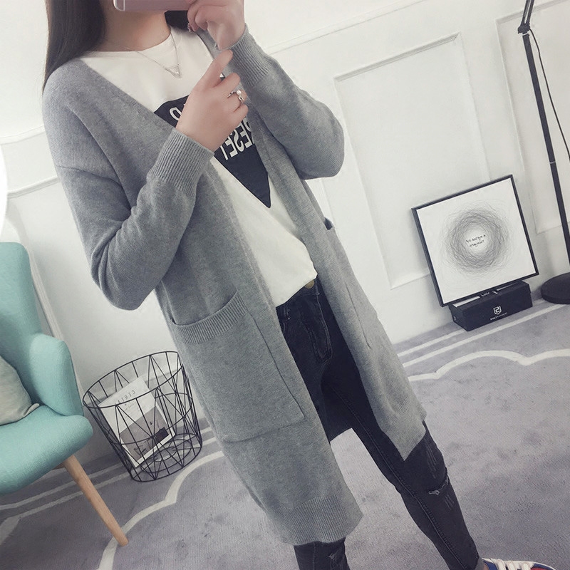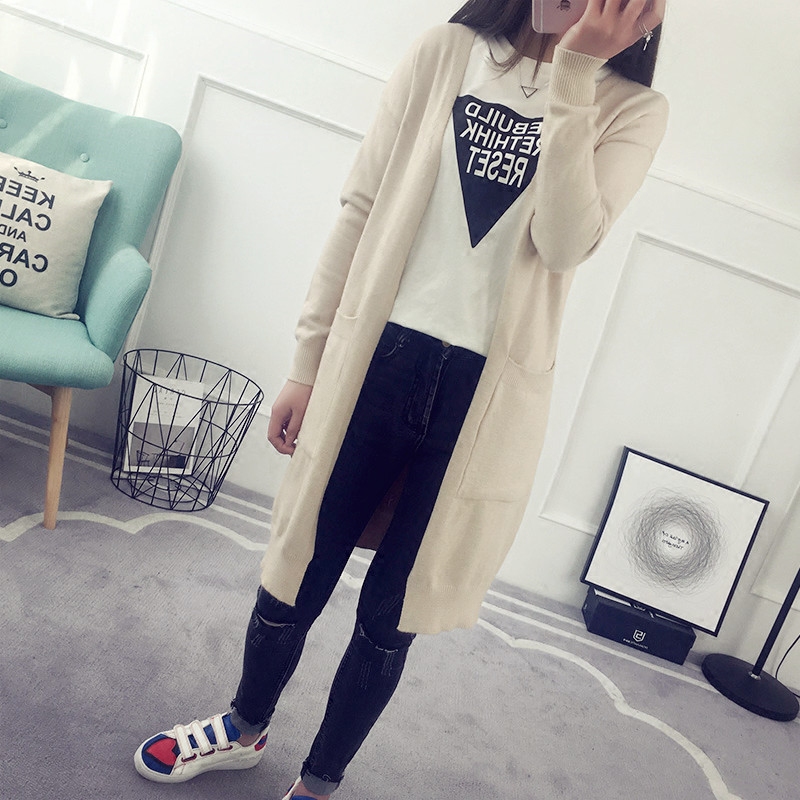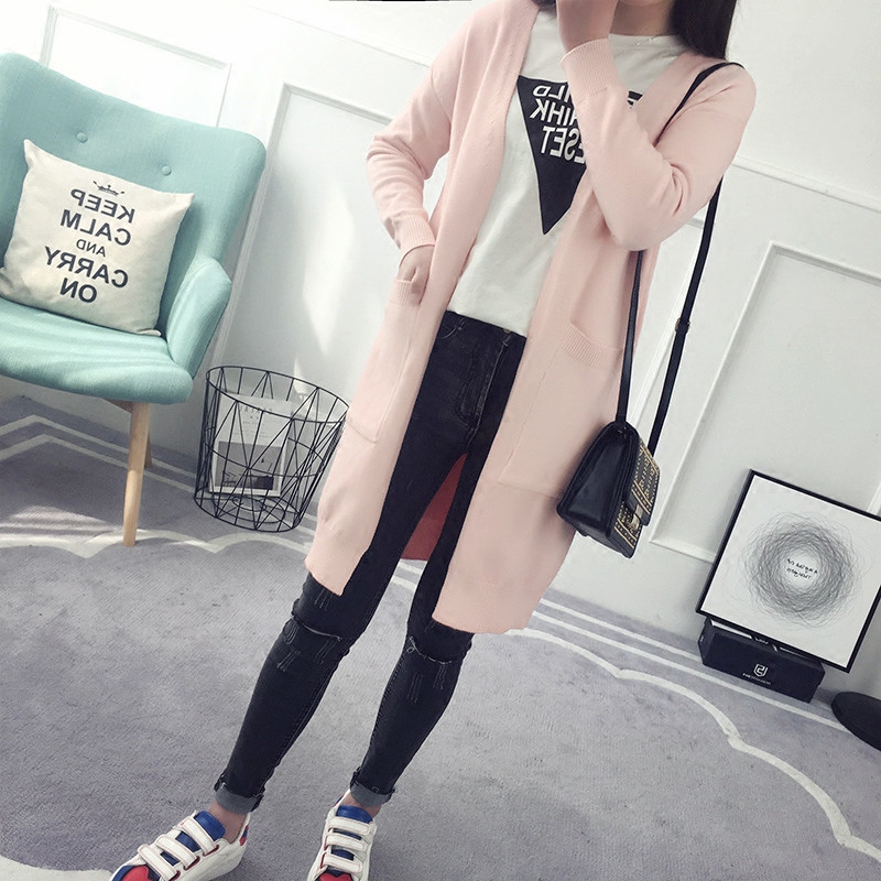 / 春裝外套女春秋韓版學生新款寬松長袖百搭中長款針織開衫毛衣