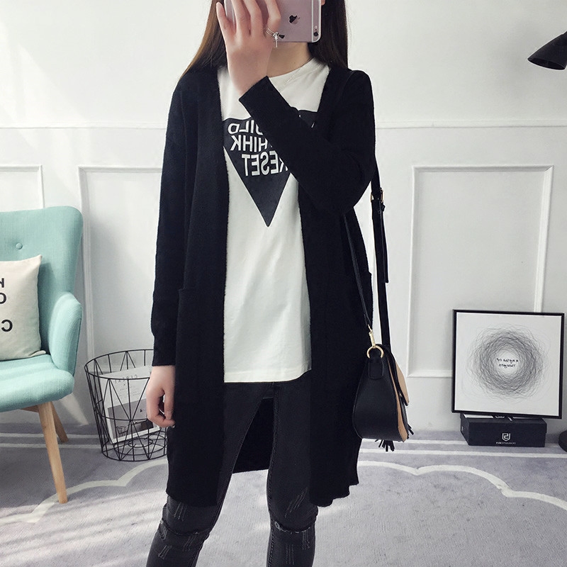 春裝外套女春秋韓版學生新款寬松長袖百搭中長款針織開衫毛衣