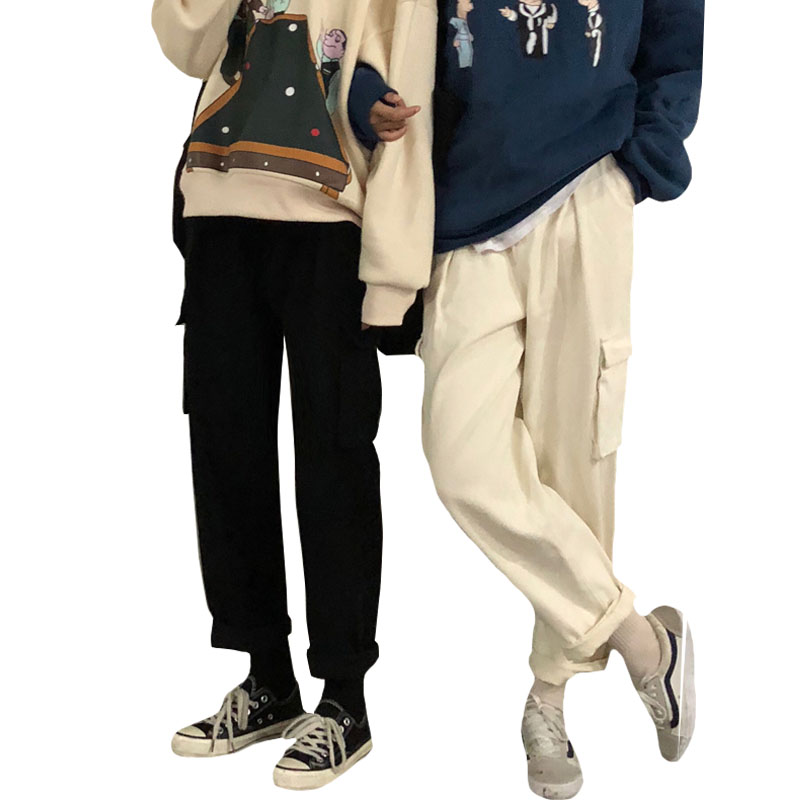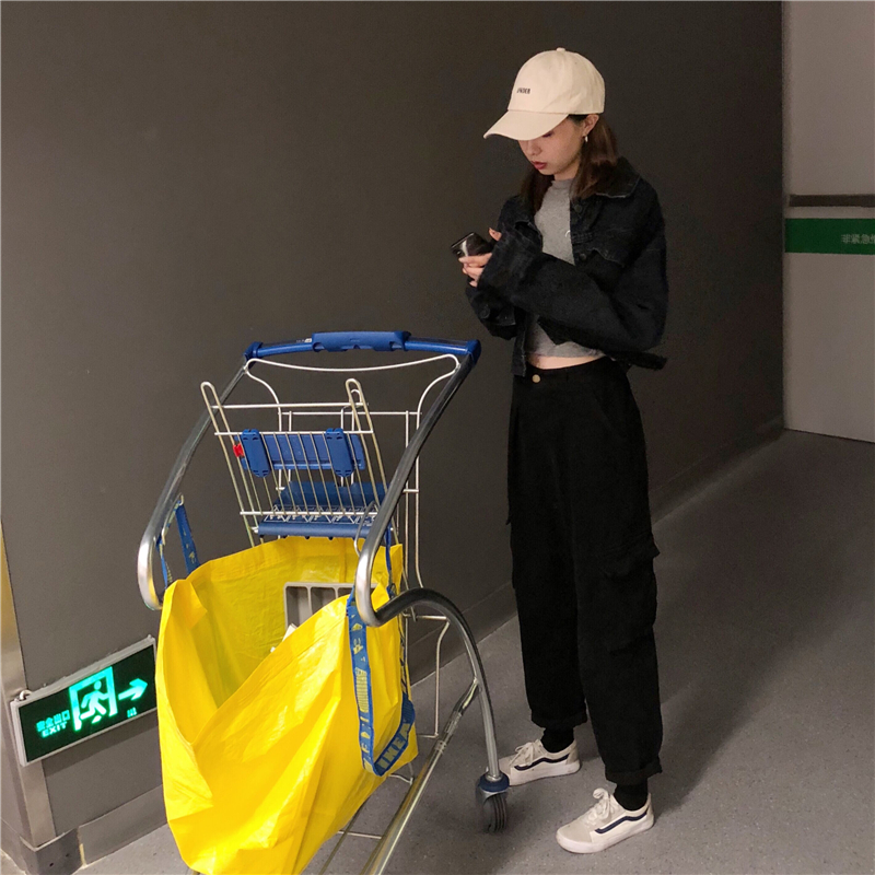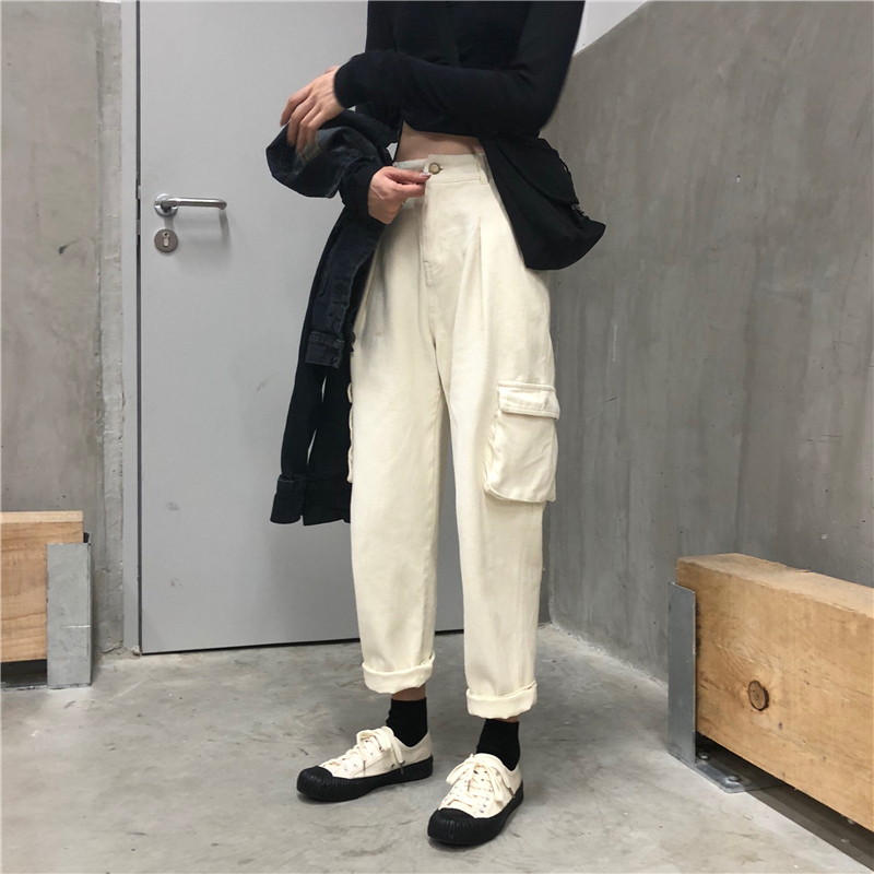 2018新款秋季韓版寬松工裝直筒褲高腰闊腿褲牛仔褲長褲學生褲子女