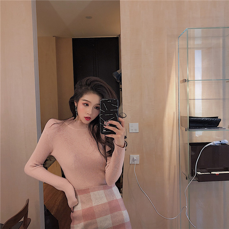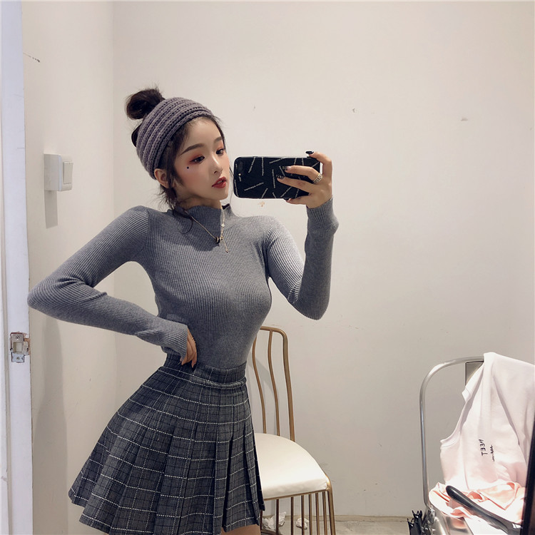 韓版chic慵懶風毛衣女2018新款秋半高領修身套頭打底衫針織衫上衣