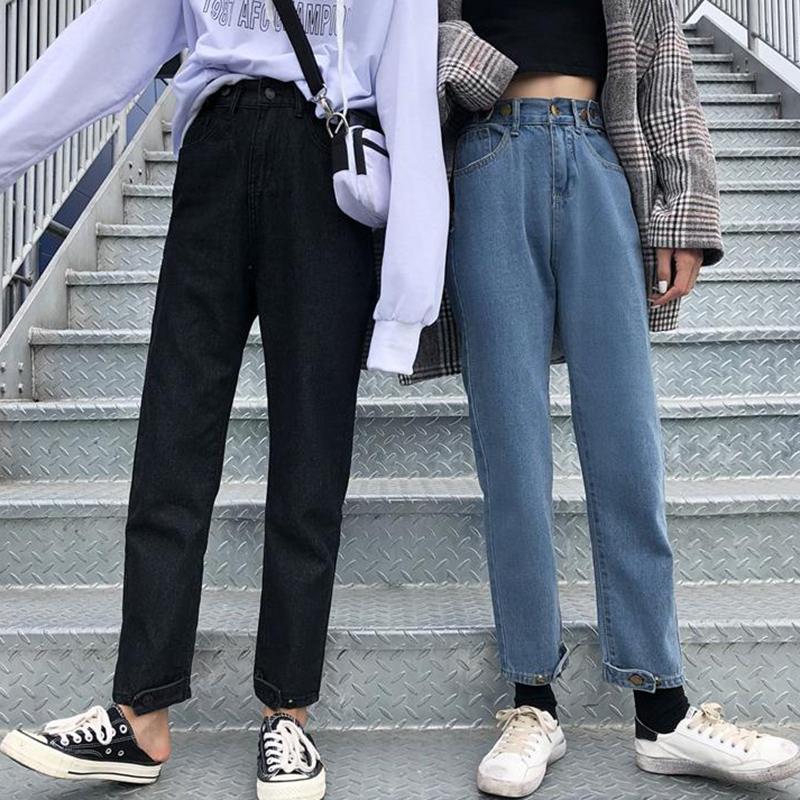 秋冬女裝2018新款高腰顯瘦復古初戀牛仔褲學生休閑寬松哈倫長褲子