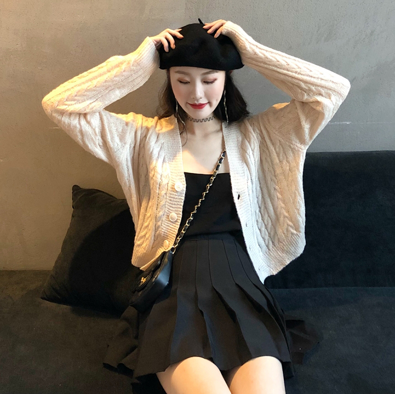 慵懶毛衣女2018秋裝新款韓版寬松V領針織開衫學生休閑長袖短外套