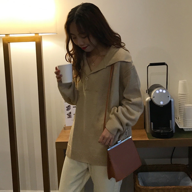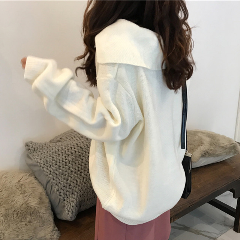 / 翻領寬松長袖毛衣女秋冬裝2018新款慵懶針織外套學生時尚白色上衣