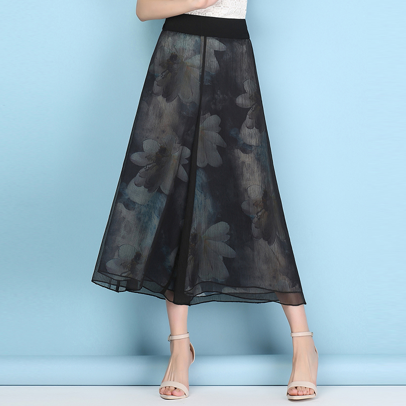 / 闊腿褲女九分褲春夏高腰寬松大碼休閑松緊雪紡寬腿褲裙大腳甩腿褲