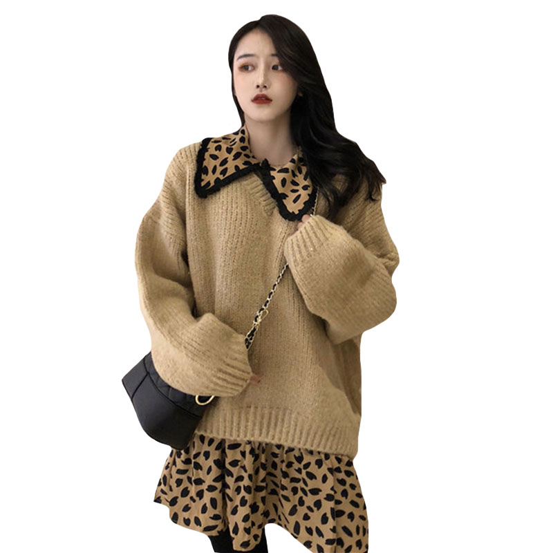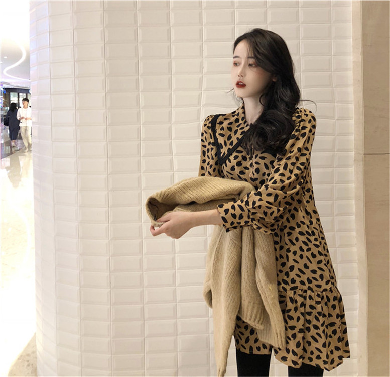 豹紋連衣裙單件|卡其毛衣單件