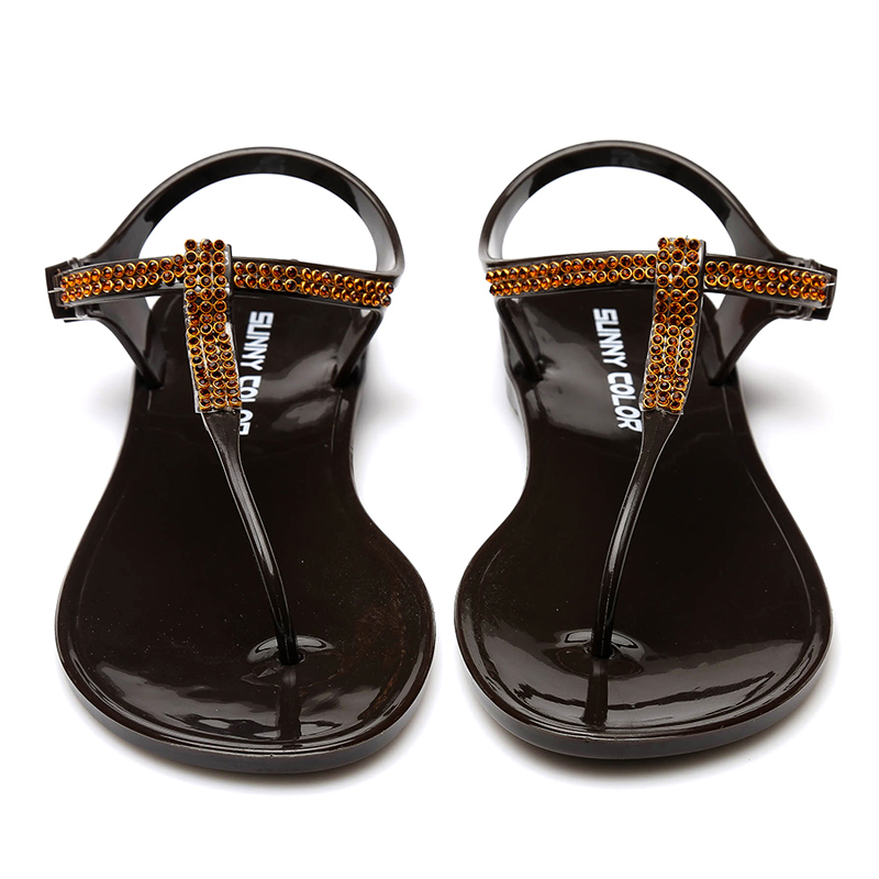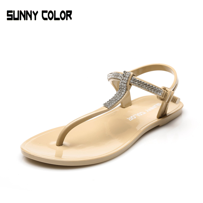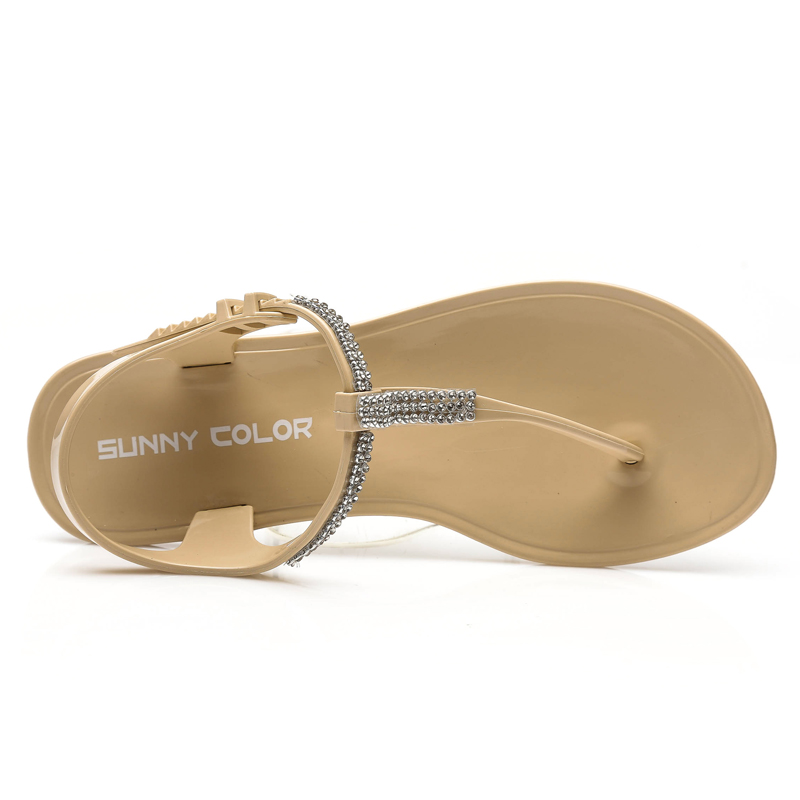 夏季平底涼鞋女士學生防滑沙灘鞋水鉆夾腳平跟羅馬鞋