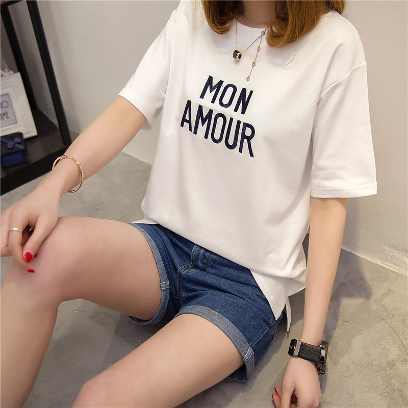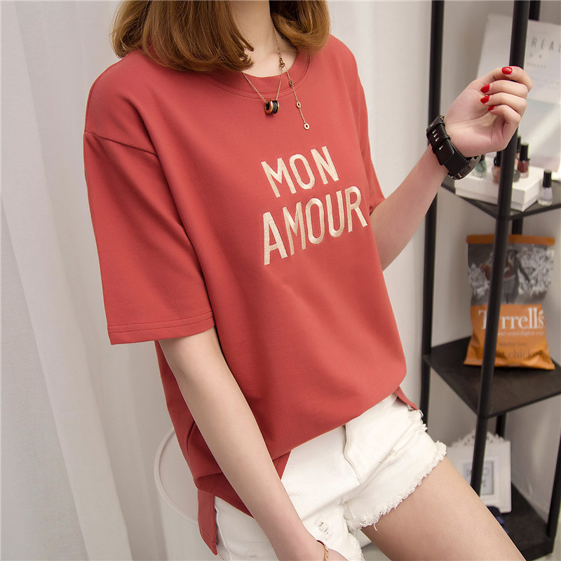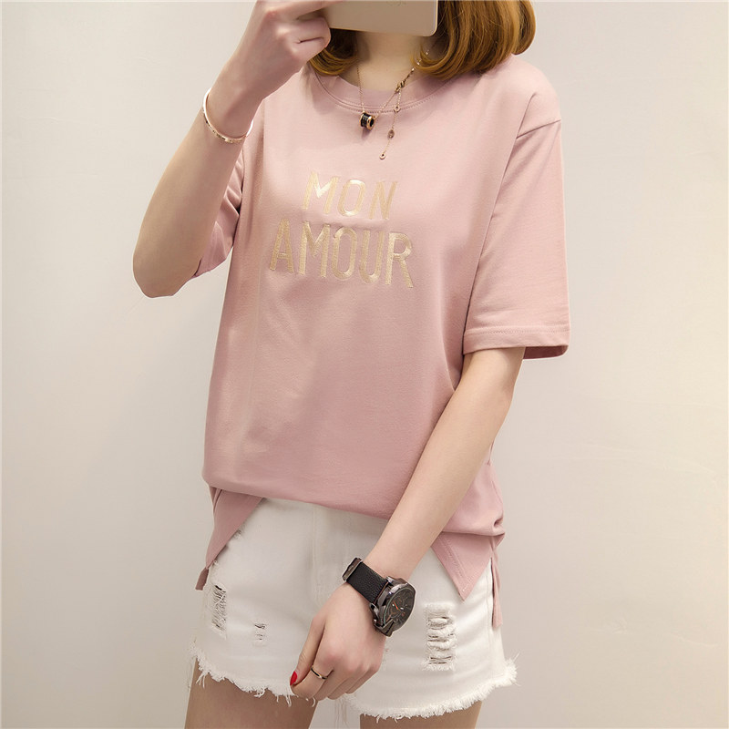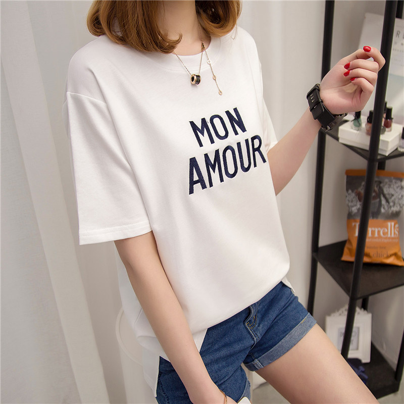 / 夏裝短袖t恤女字母寬松上衣打底衫女韓版體恤春季時尚新款潮