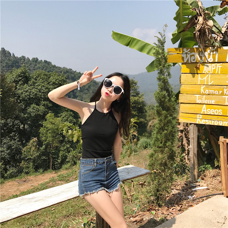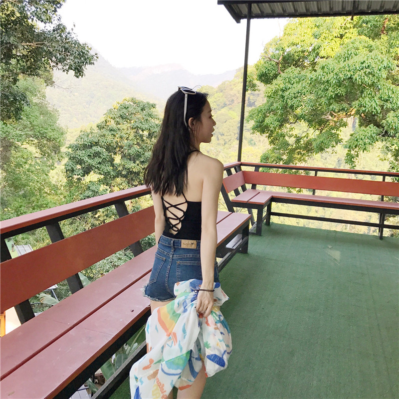 / 秋裝女2018夏新款性感交叉露背修身黑色短款打底外穿吊帶小背心