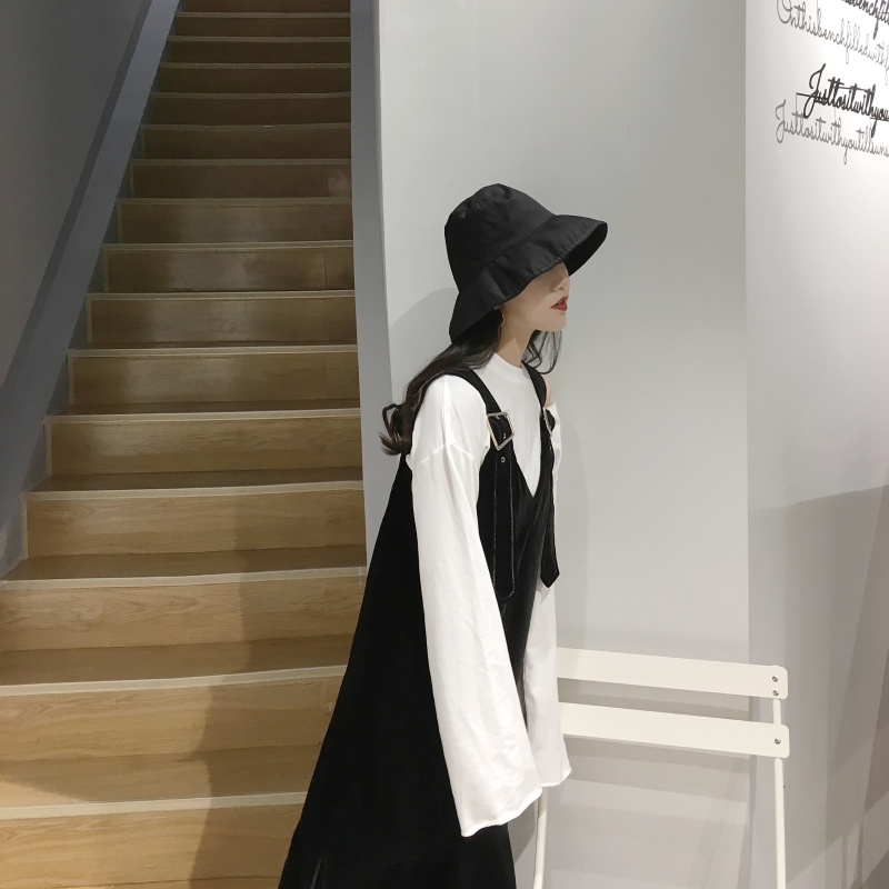 秋裝女2018新款韓版溫柔風黑色百搭顯瘦開叉V領打底吊帶連衣裙潮